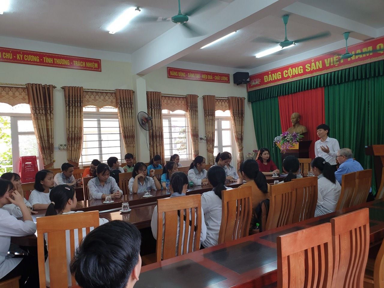 Đại diện hội cha mẹ học sinh nhà trường đến động viên các em trước ngày thi.