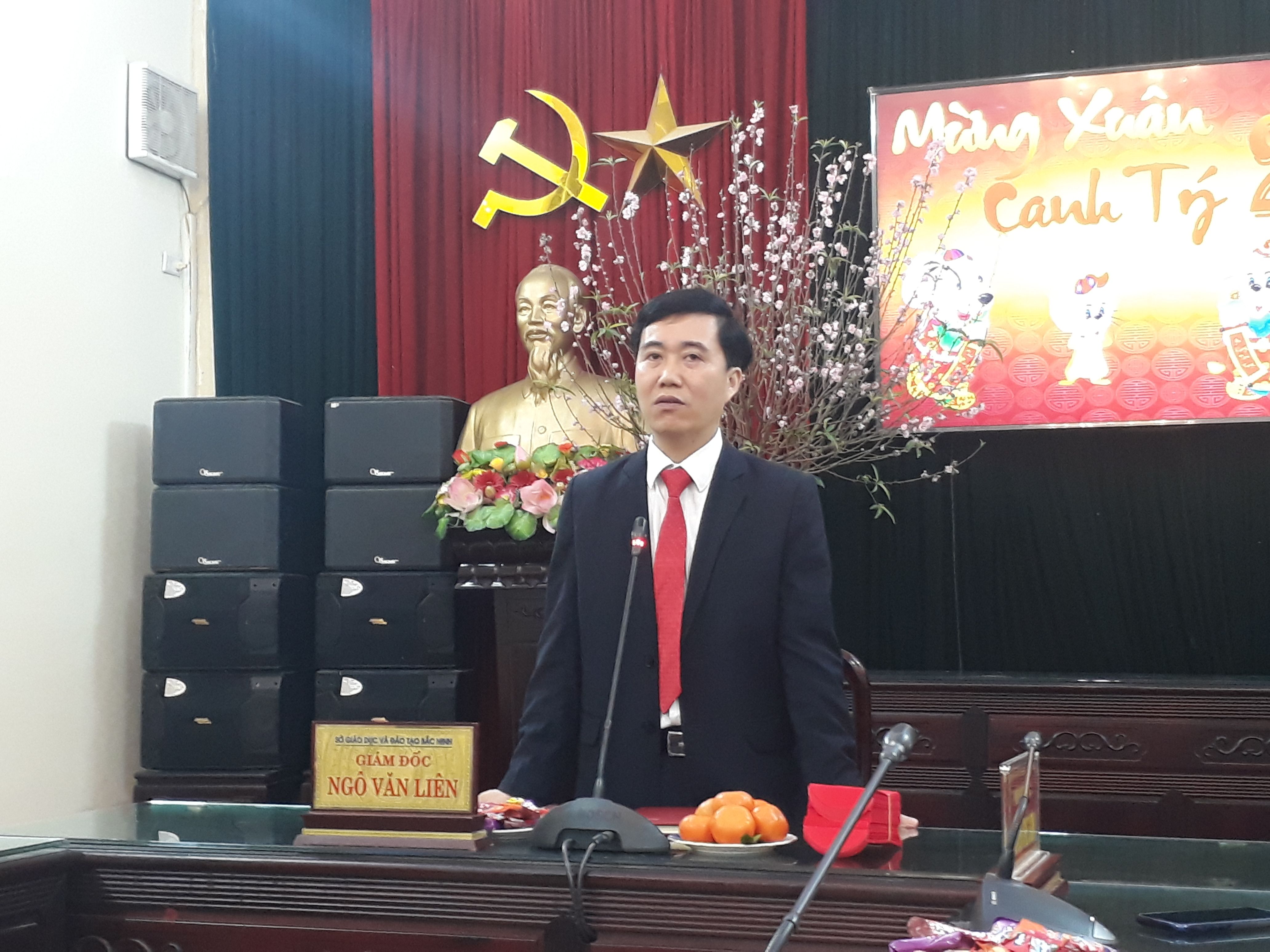 Đ/c Ngô Văn Liên, Tỉnh ủy viên, Giám đốc sở GDĐT phát biểu chúc mừng năm mới xuân Canh Tý 2020