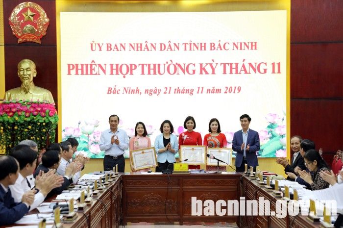 Tại phiên họp, Chủ tịch UBND tỉnh trao Bằng khen cho các giáo viên: Ngô Thị Lụa, Trường Mầm non Thái Bảo, huyện Gia Bình; Nguyễn Thị Diệp, Trường THPT Thuận Thành số 1; Hoàng Việt Hà, Trường THPT Quế Võ số 2 có thành tích xuất sắc tiểu biểu trong phong trào thi đua “Mỗi thầy, cô giáo là tấm gương đạo đức, tự học và sáng tạo”.