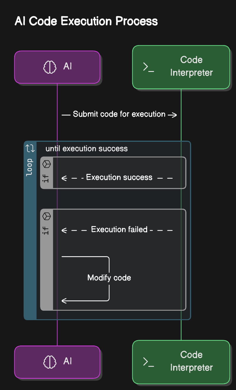 The File and Code agents operate similarly: when a prompt is submitted, they initiate a loop between the LLM and a code interpreter. This loop continues executing commands or code until the execution is successful or the maximum number of attempts is reached. ### Web agent