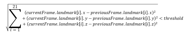 ตำแหน่งทั้ง 21 จุดของ frame ปัจจุบันจะถูกเปรียบเทียบกับ frame ก่อนหน้า ดังสมการ