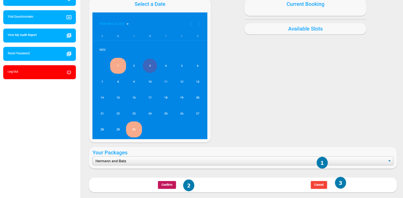 This allows the Trainee to select which package they would like to book for. |