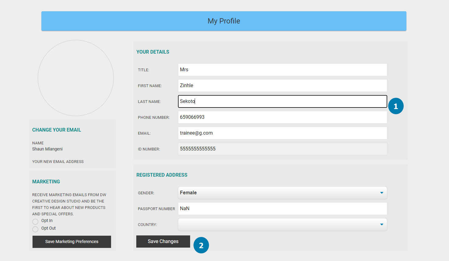 The trainee can maintain their profile from this menu item. |