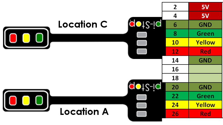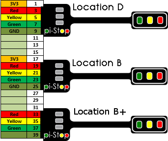 > **WARNING:** Extra care should be taken when using locations D and C since they will not line up with the end of the GPIO header.