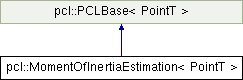 Inheritance diagram for pcl::MomentOfInertiaEstimation< PointT >:Public Types | |