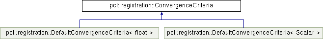 Inheritance diagram for pcl::registration::ConvergenceCriteria:Public Types | |
