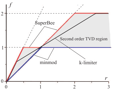 "Hàm $\\phi(r)$ chính là giới hạn độ dốc. Có nhiều hàm giới hạn khác nhau [tham khảo](https://en.wikipedia.org/wiki/Flux_limiter):\n",