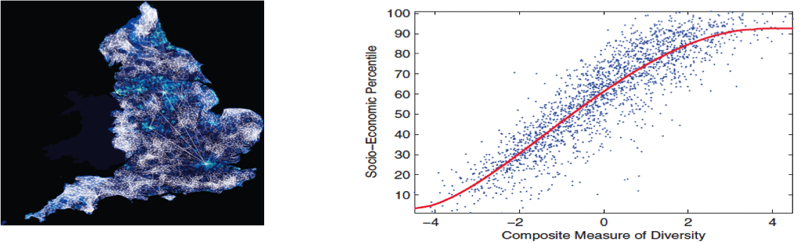 "Nathan Eagle, Michael Macy and Rob Claxton: Network Diversity and Economic Development, Science 328, 1029–1031, 2010.\n"