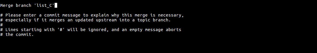 Now, I'll checkout the 'master' branch and merge list_C into it; as with the list_A branch above, this will not create a merge conflict.
