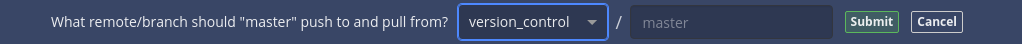 After you click 'Push', you will be asked what branch to push and pull from. Keep 'master' for now and just click 'Submit'.