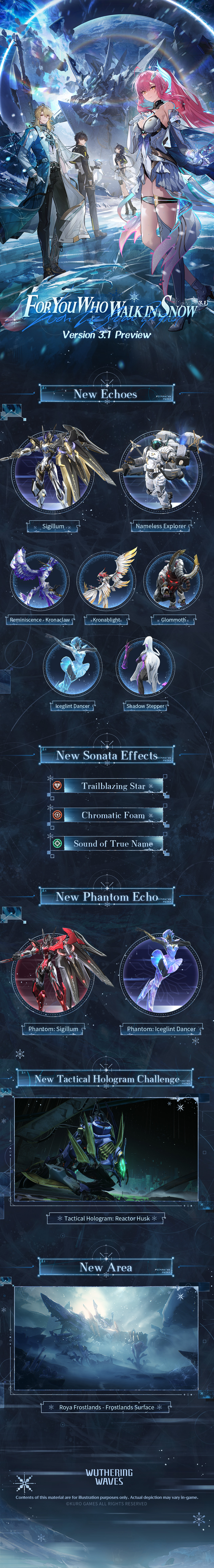 Create your own artwork about Wuthering Waves Version 3.1 "For You Who Walk in Snow"!