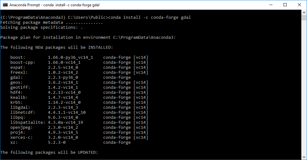 "__Note__: `--no-pin` is added to the install command in order to not restrict maximum package versions, and thus to avoid having certain packages be downgraded when installing gdal. If gdal and/or numpy do not meet the version requirements, then modify the install command to:\n",