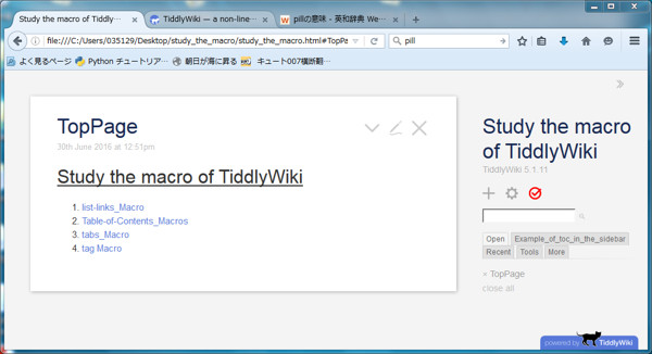 まず、TiddlyWikiのファイルをGecko系のブラウザで開きます。編集後、