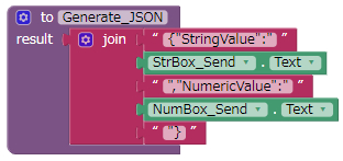 を使って送信用JSON形式の文字列生成関数を作ります(画像5のGenerate_JSON)。