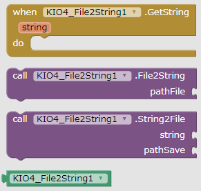 call KIO4_File2String.String2Fileは、stringに文字列を指定すると、文字列からファイルを作成し、pathSaveで指定したファイルに保存します。