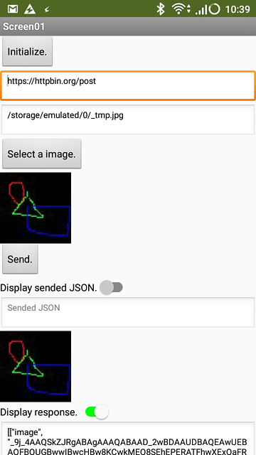 {"image":"★★★Base64の文字列★★★"}今回もエコーサーバーには、httpbin.org を利用しますので、受信したレスポンスからデータを取得する際は、”json”というキーの値を取り出します。(Get_json_Key(ResponseContent) 関数)
