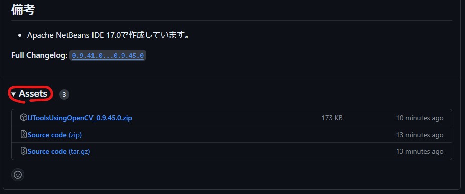 (2) GitHubのOpenCVのページのreleasesからexe形式のものをダウンロードします。