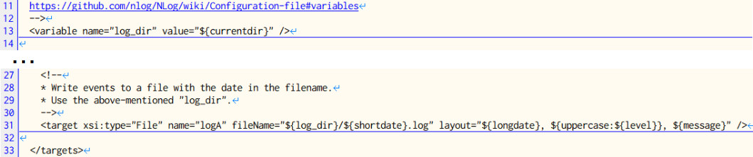 NLog.configを選択してください。 NLog.configの13行目と31行目で以下のように設定しているので、作業フォルダにログが出力されます。