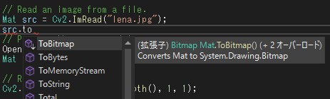 MatをC#のBitmapに変換する関数は、C#上では以下のように簡単に利用できます。
