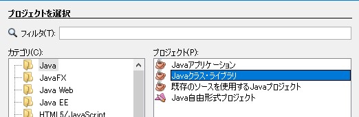 - ファイル ⇒ 新規プロジェクト ⇒ カテゴリー ⇒ Javaクラス・ライブラリ ⇒次>
