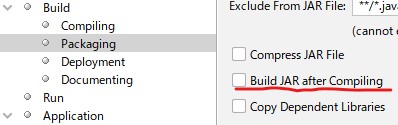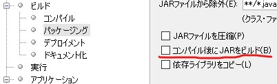 - 「コンパイル後にJARをビルド」のチェックを外す