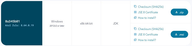 上の場合、「Java 1.80_345」と表示されているので、「Java 8 Update 345」で動作していることが分かります。