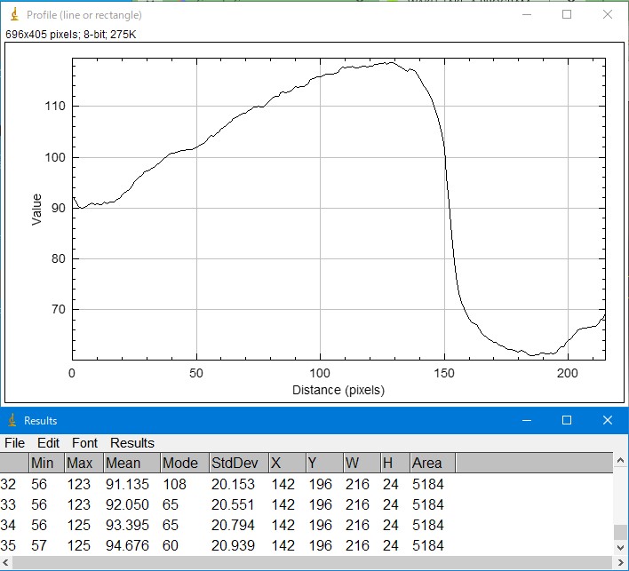 USB接続された標準的なUVCカメラから映像をリアルタイムで取り込み、ImageJ上でライブ表示しながら統計解析やプロファイル計測を行うツールです。 単なる表示だけでなく、画像上に引かれたROI(選択範囲)に基づいて、輝度分布のグラフ(プロファイル)を動的に更新できるのが特徴です。