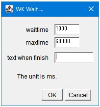 指定した時間(ミリ秒)だけ、ImageJのプログラム実行を一時停止させます。 マクロの実行中に結果をユーザーWK_Waitが確認するための時間を設けたり、外部機器の応答を待つ際の調整用として使用します。