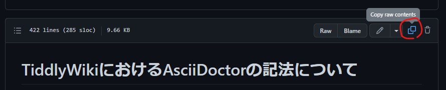 新規にAsciiDoc用のTiddlerを作成した後、「Copy row contents」でクリップボードにコピーして、Tiddlerにペーストすれば確認できます。
