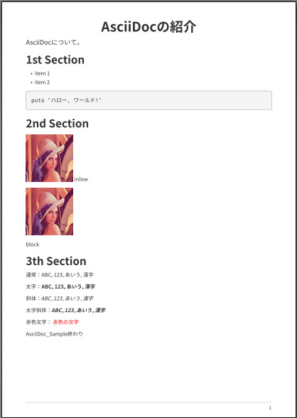 「my-theme.yml」は、今回の例ではAsciiDocファイルと同じフォルダに設置します。AsciiDocファイルの属性で以下のように記述します。