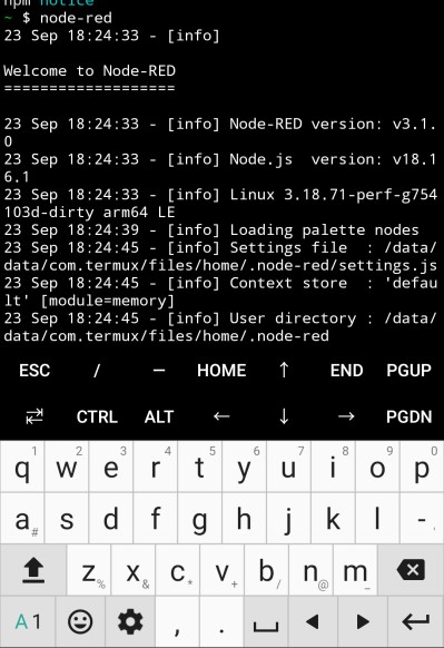 Termuxは端末エミュレーションです。pkgコマンドを使って様々なパッケージをインストールすることが可能です。TermuxにNode.jsをインストールし、npm installでNode-REDをインストールするのです。