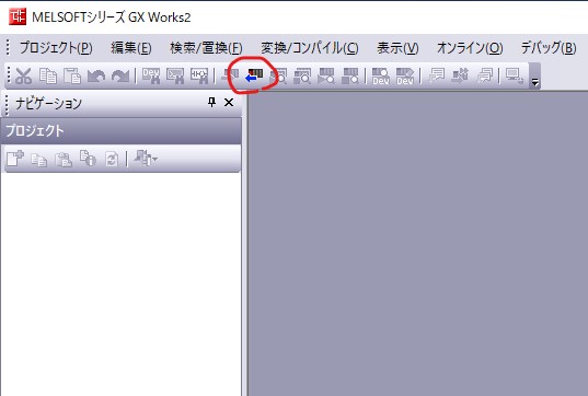 GX Worksを立ち上げます。プロジェクトの新規作成は設定が大変なので、PLCから設定を読み取ります。