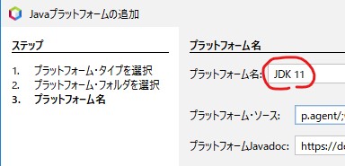 最後のプラットホーム名を「JDK[空白]17」にします。以下の画像では11になってますが。。。