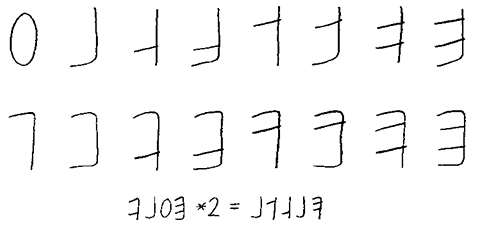 A way to look at this system is to consider the hand as an abacus, where the little finger has a value of 1, the ring finger has a value of 2, the middle finger has a value of 4, and the index has a value of 8. Numbers are made by adding the value of the pointed fingers.