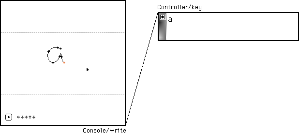 This thin software layer merely allows for the spawning and destruction of instances, as well as routing of device ports between instances. For example, connecting a keyboard application's Console/write port, to another application's Controller/key port, would trigger the Controller/vector. Effectively making for an on-screen keyboard.