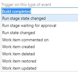 Sources of **Azure DevOps** events that impact our delivery can come from virtually any area of the platform including work items, pipelines, source control, testing and artifact delivery. For [practically any event within **Azure DevOps**](https://docs.microsoft.com/en-us/azure/devops/notifications/oob-supported-event-types?view=azure-devops), such as completed work items, executed builds or delivered releases, we can setup notifications. Service hooks and notification subscriptions can be configured to allow real time reporting of events to external parties and systems allowing for us to stay in a state of continuous communication and collaboration.