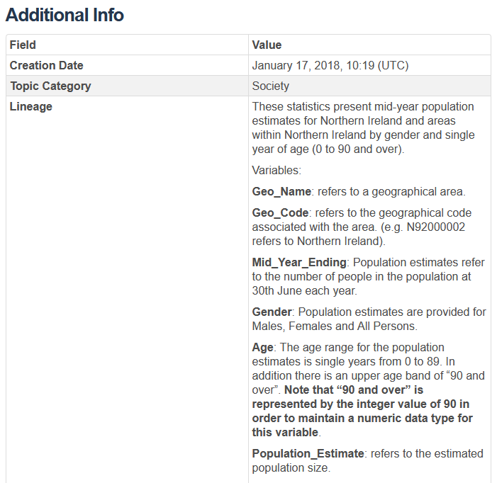 "We're going to start off with a relatively 'easy' one; [Population Estimates for Northern Ireland by Parlimentary Constituency](https://www.opendatani.gov.uk/dataset/population-estimates-for-northern-ireland/resource/67c25586-b9aa-4717-9a4b-42de21a403f2)\n",
