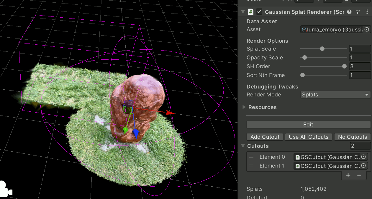 an area. In the `GaussianSplatRenderer` inspector there's a list of cutout objects affecting