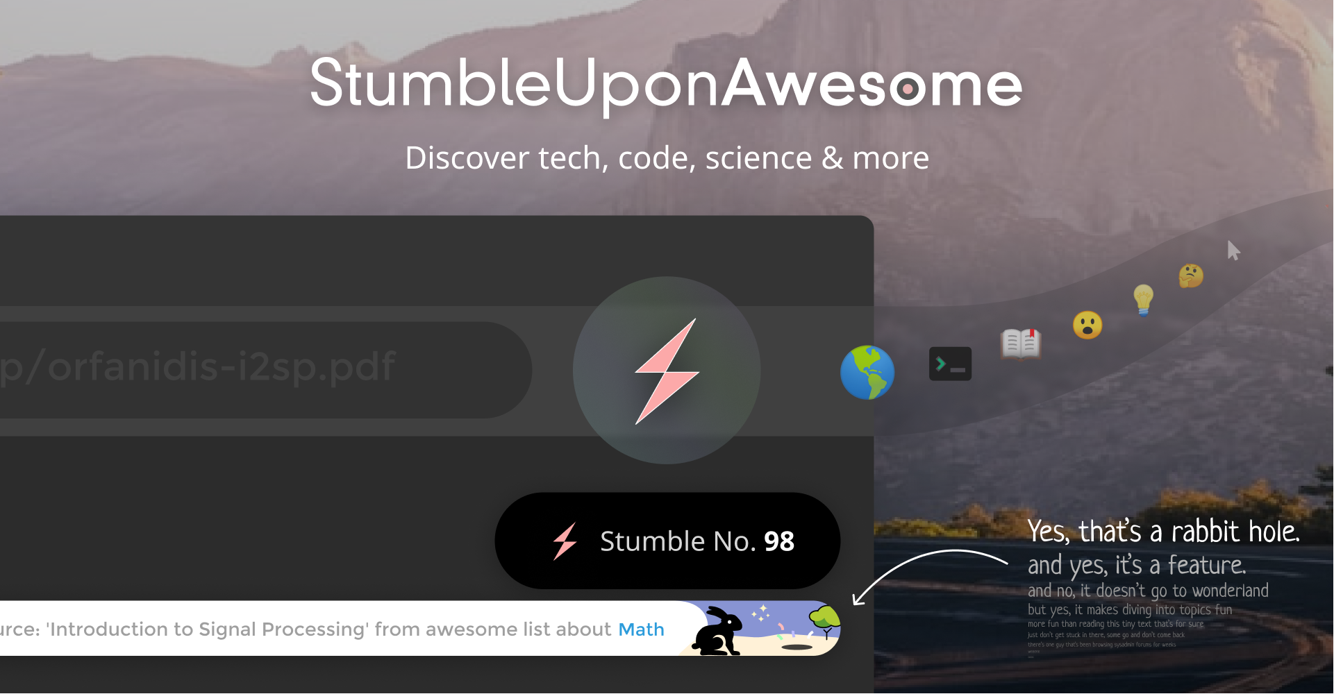> A browser extension that takes you to a random site from one of the [awesome curated lists](https://github.com/sindresorhus/awesome). Like good ol' StumbleUpon (which is now dead).