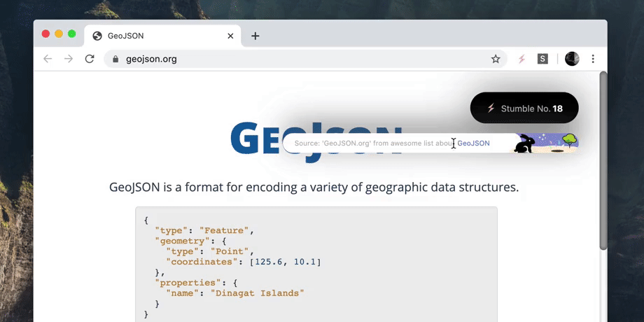 **To stumble:** Simply click on the ⚡️ extension button → go to a new awesome site!