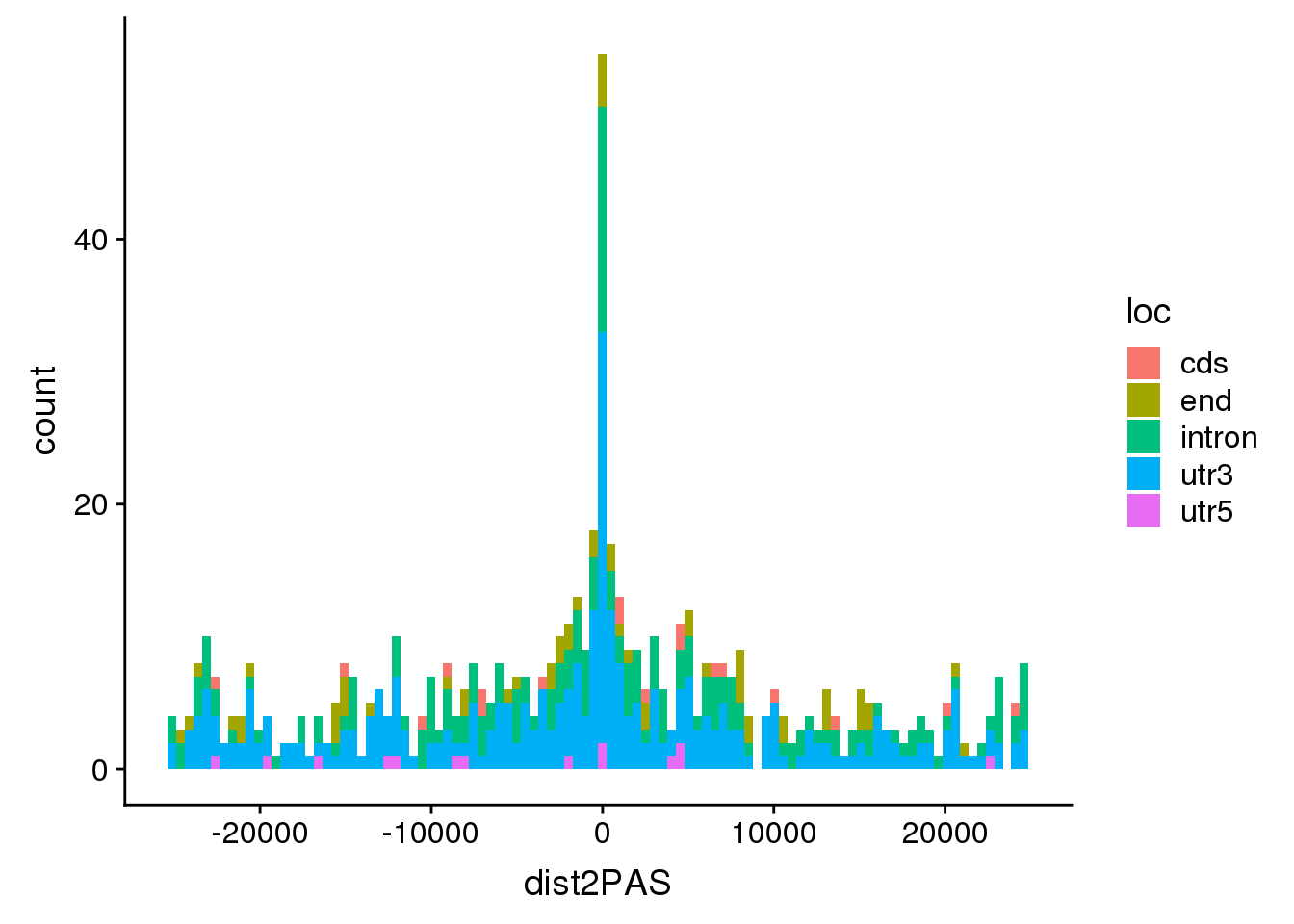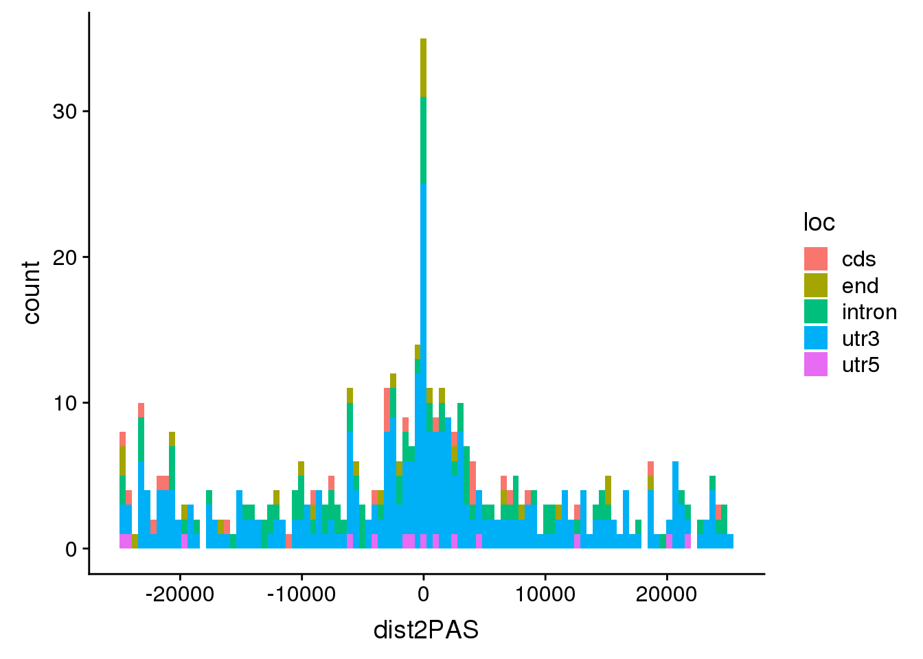 PAS=read.table("../data/PAS/APAPAS_GeneLocAnno.5perc.bed",col.names = c("chr", "start", "PASloc", "name", "score", "strand"), stringsAsFactors = F )%>% separate(name, into=c("peakNum", "geneloc"), sep=":") %>% mutate(peak=paste("peak", peakNum, sep="")) %>% select(PASloc, peak)