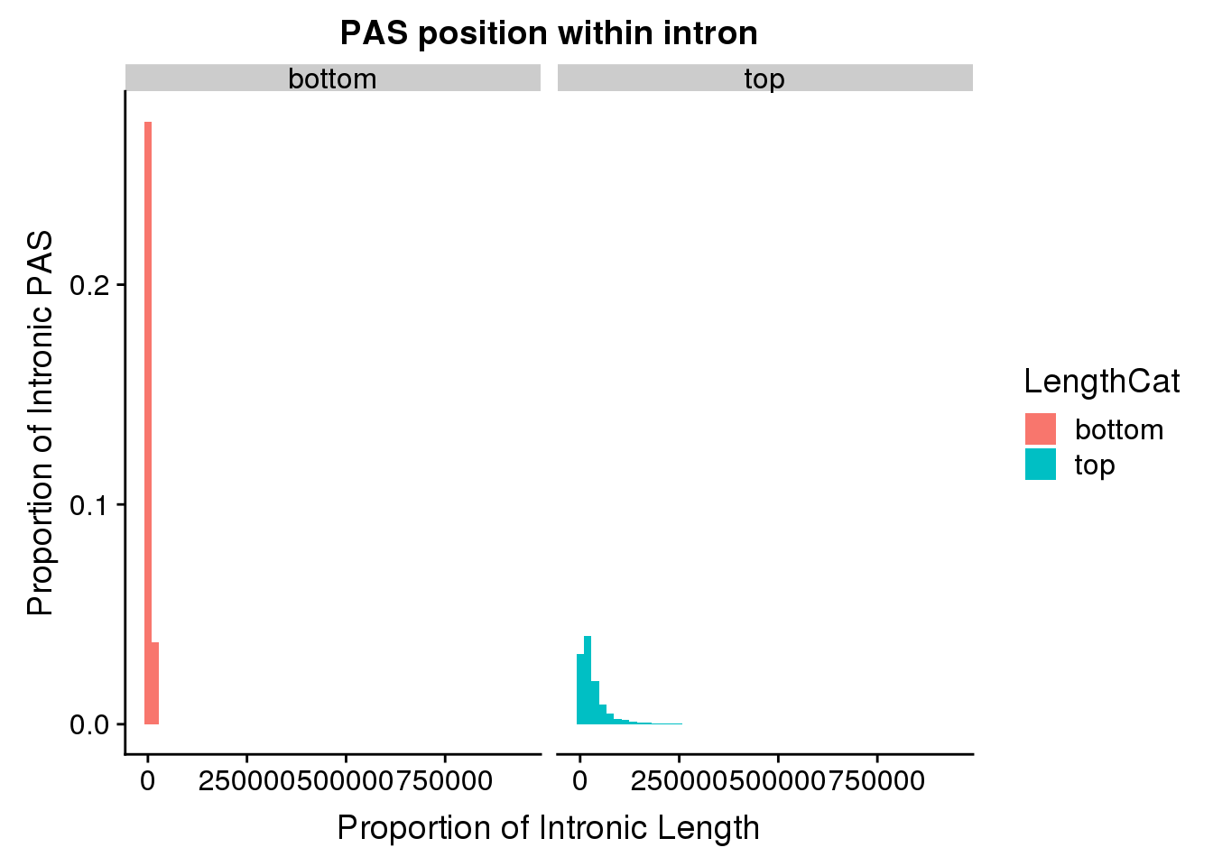 pas2intronTotal_cat_first=pas2intronTotal_cat %>% filter(Intornid==1) %>% mutate(LengthHalf=ifelse(intronLength<=8872, "Short", "Long"))