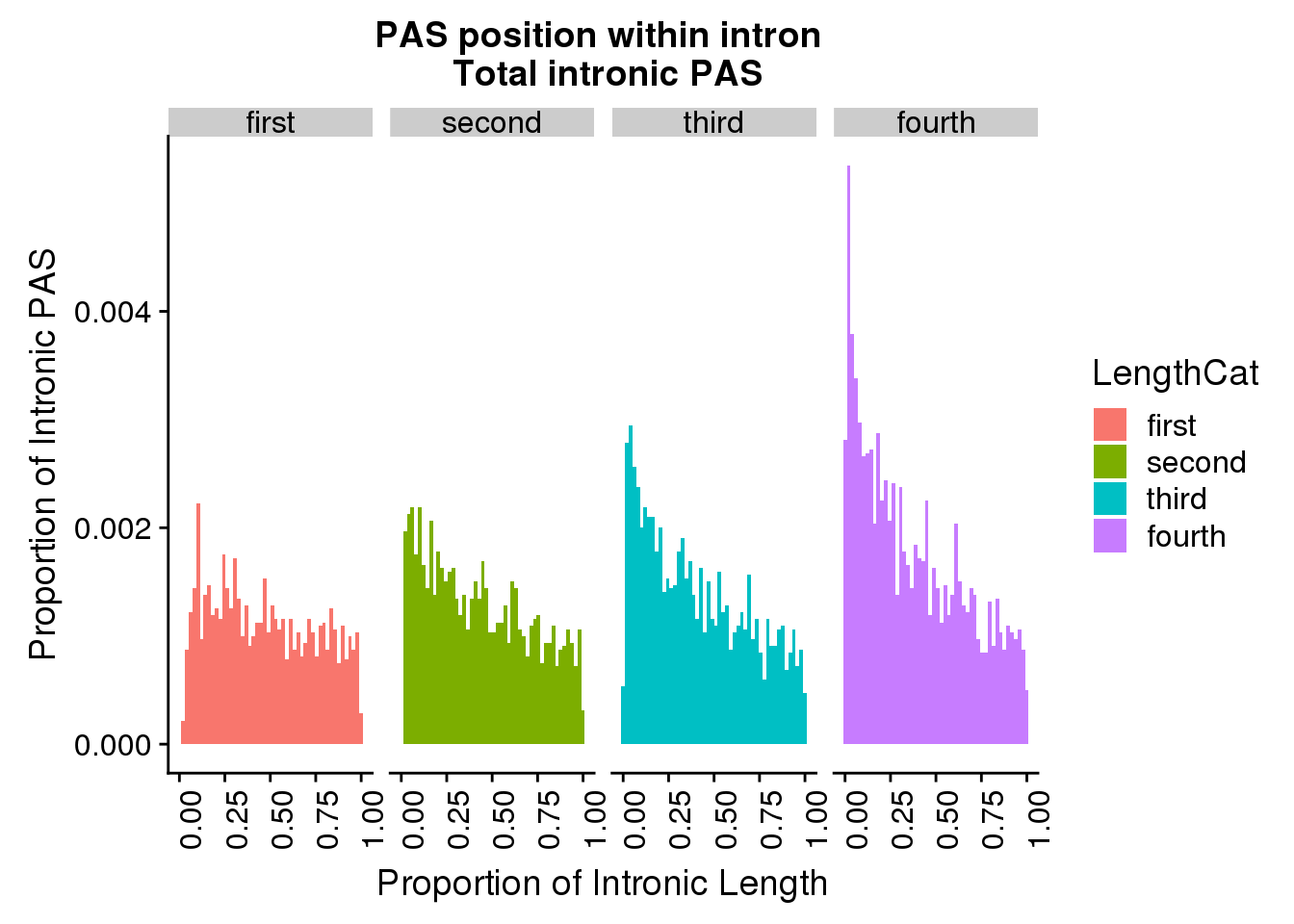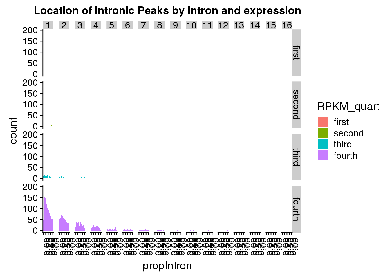 pas2intronNuc_exonofgene_rpkm_topexp$RPKM_quartTop <- factor(pas2intronNuc_exonofgene_rpkm_topexp$RPKM_quartTop, levels=c("first", "second", "third", "fourth"))