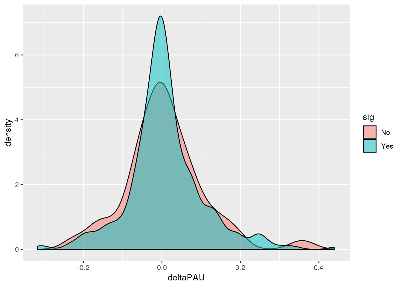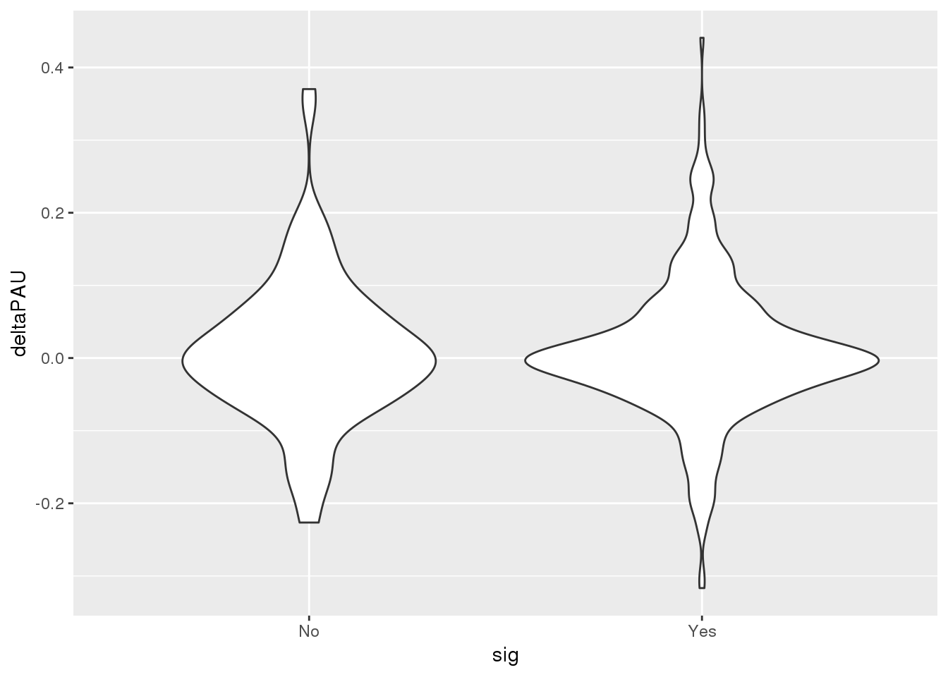 nucAPAinTot_effect=nucAPAinTot %>% inner_join(DiffIsoEffect,by=c("start", "end", "gene")) %>% mutate(sig=ifelse(pval>.05, "No", "Yes"))