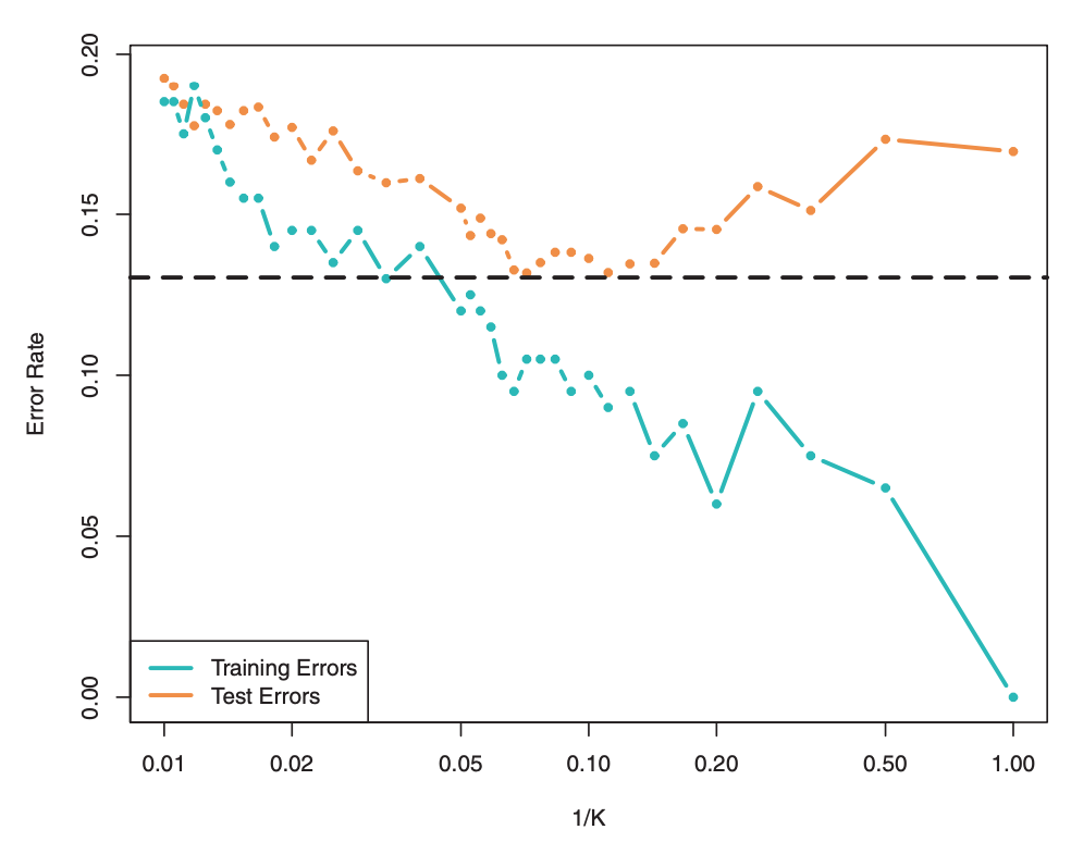 * Use cross-validation to identify $k$ with the minimum test error