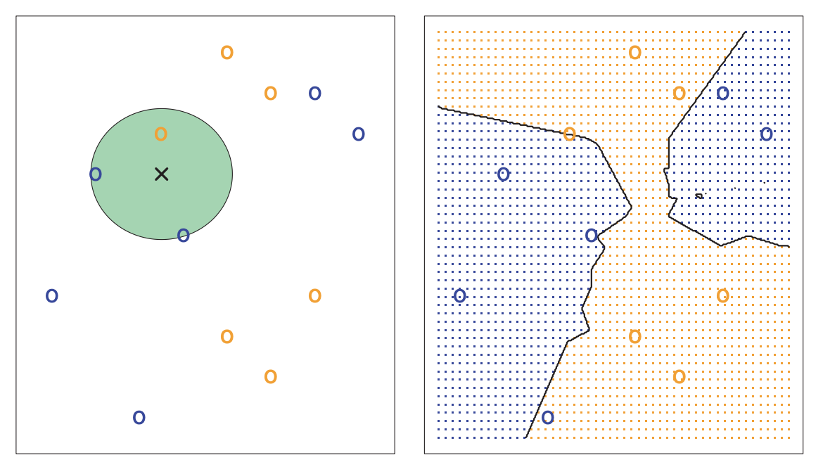 * **Output:** Predicted class $\hat{Y}^*$, the most common class from $X_{(1)},\ldots, X_{(k)}$