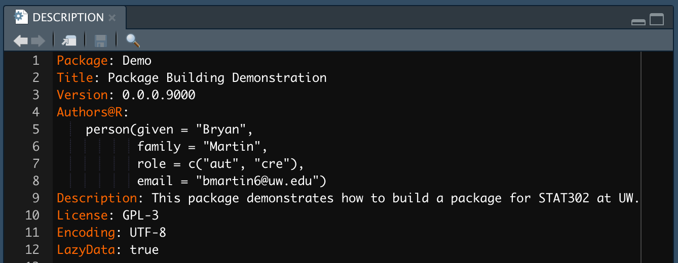 Fortunately, with devtools you don't have to (and shouldn't!) ever edit this file by hand!