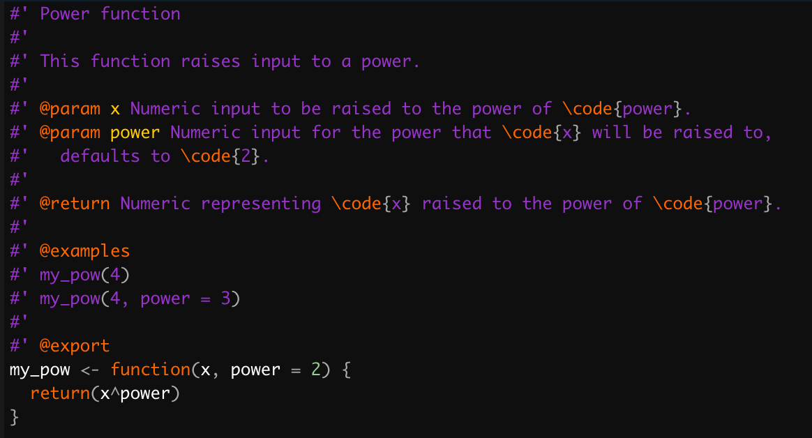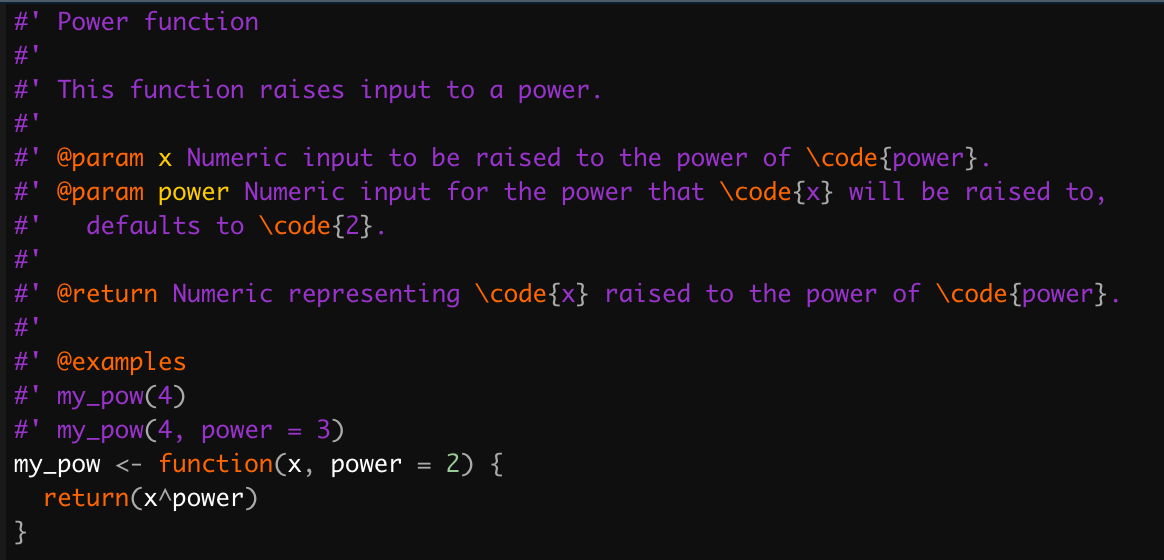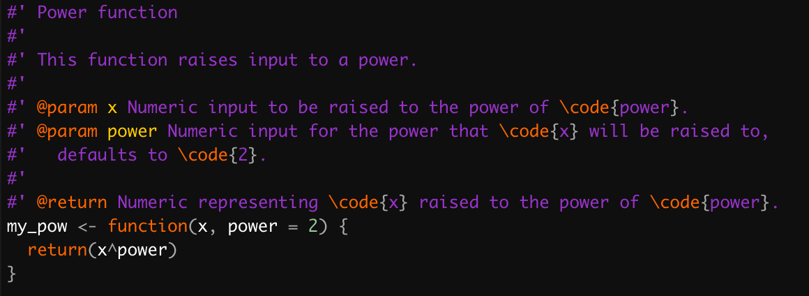 * Note my use of `\code{}` and `\link{}`. Pay attention to what that does to the documentation on the next slides.