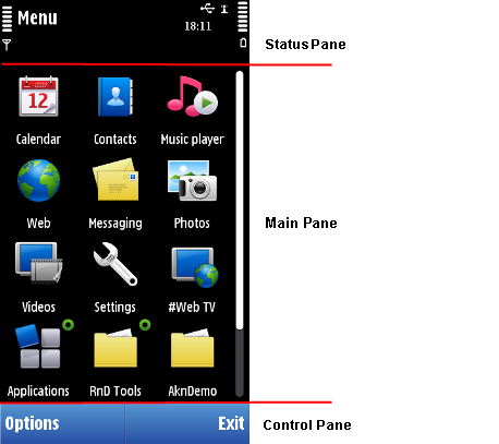 Symbian UI can rotate between portrait and landscape layouts. For more information on the design implications of this feature, see Symbian UI with rotation .