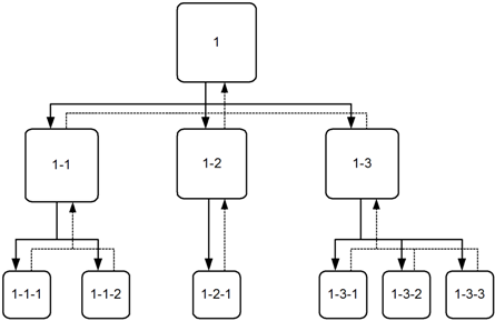 Mobile device users navigate through applications based on input from selections in the control pane or key presses. The traditional hierarchical tree structure forms the basis for navigation, with mobile device users moving from one node, which represents a state, to another.